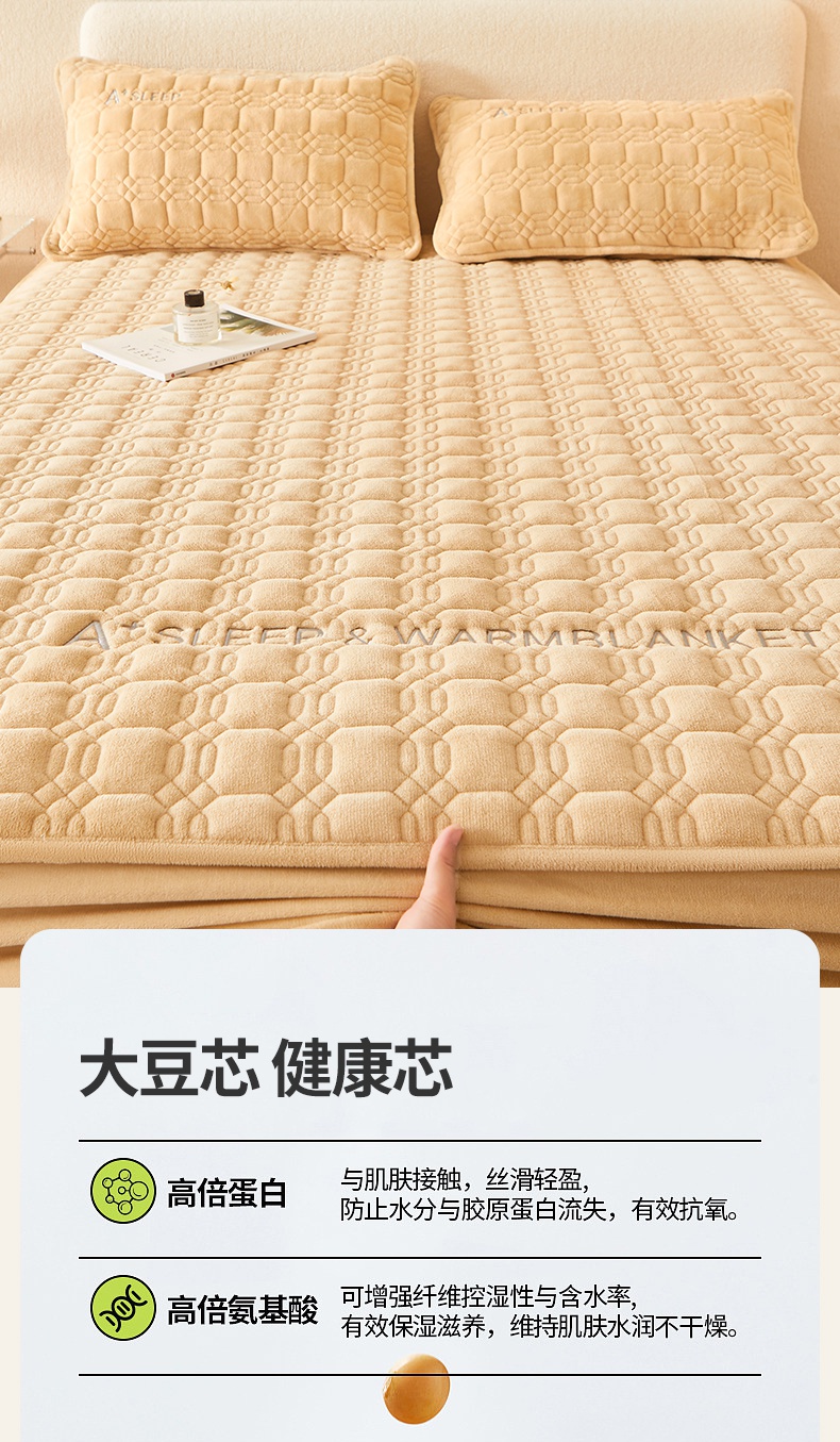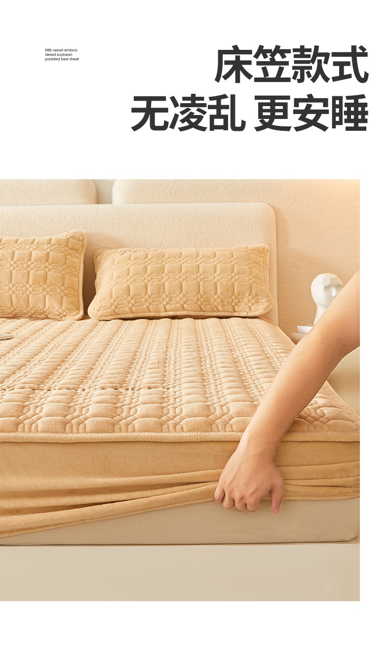 A类牛奶绒刺绣夹棉床笠